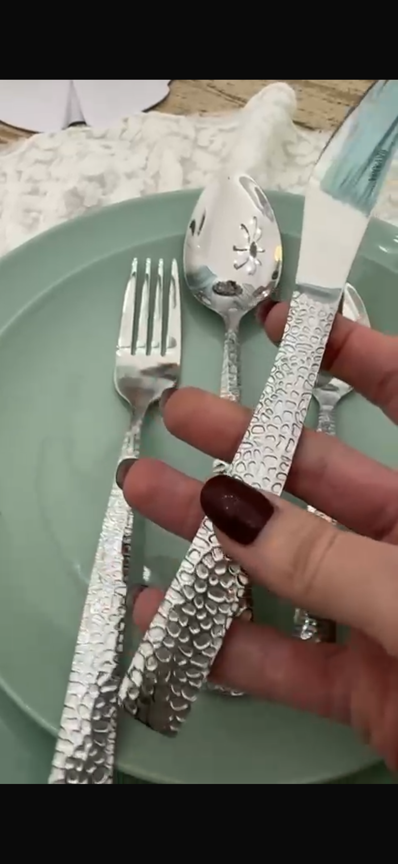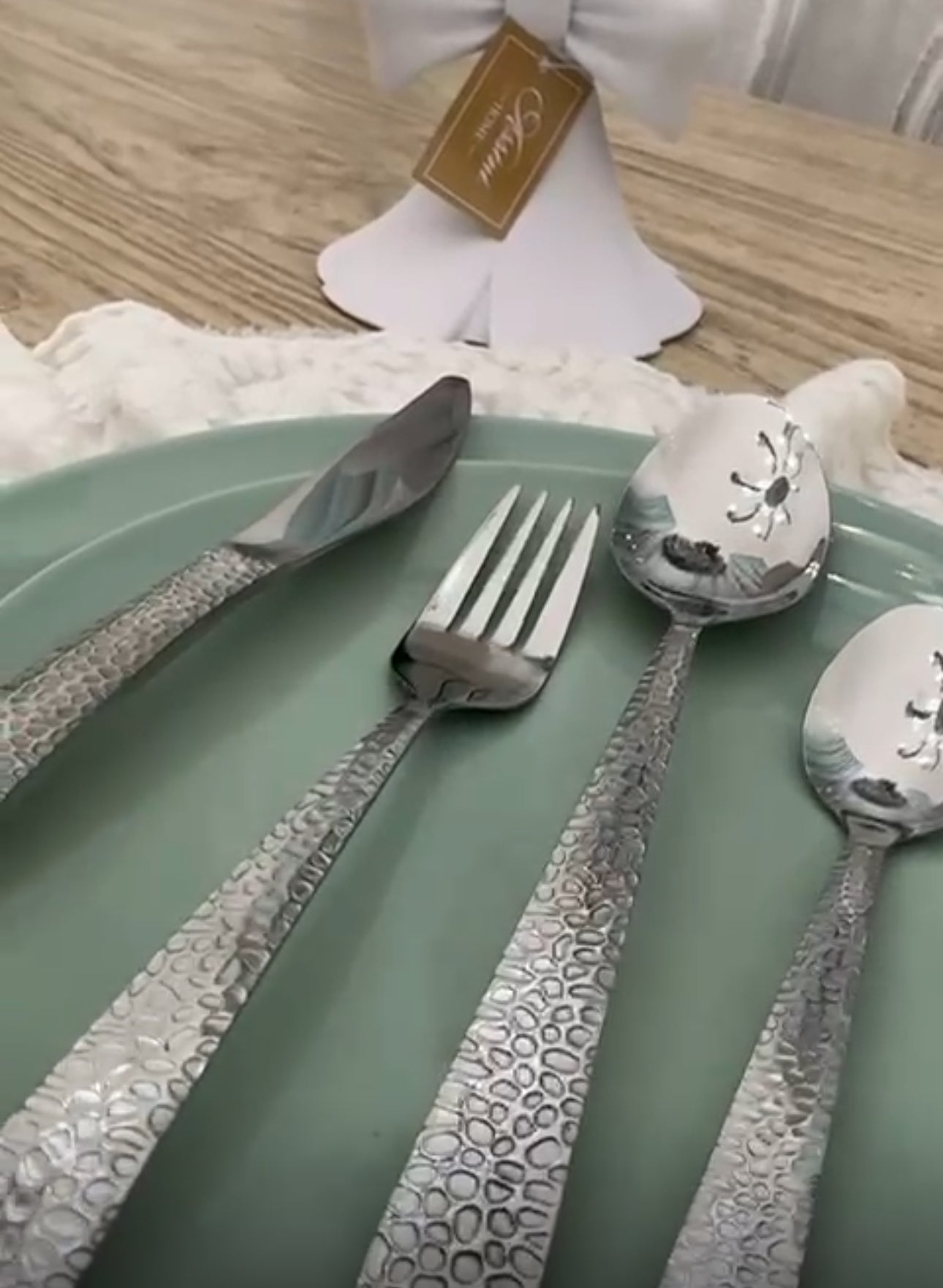 Questo set di posate in acciaio è più di un semplice utensile per mangiare: è un complemento elegante alla tua tavola e una dimostrazione di gusto e attenzione per i dettagli. Ogni pasto diventa un'esperienza di lusso con queste posate che offrono una combinazione perfetta di stile e funzionalità.