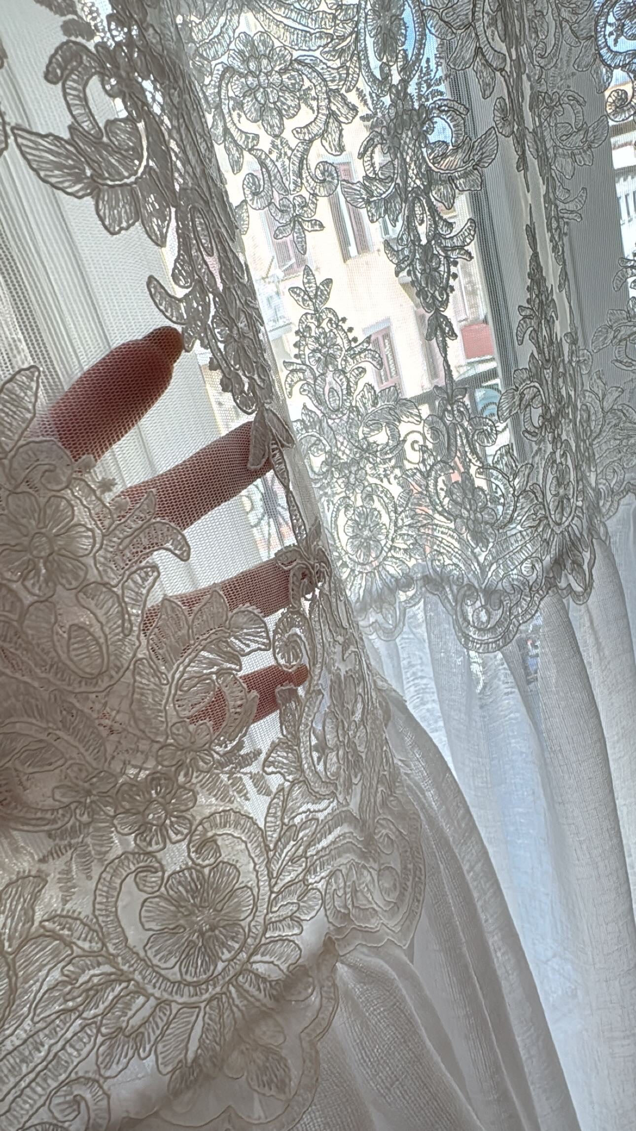 Questa tenda in lino e pizzo bianca è un vero inno alla delicatezza.