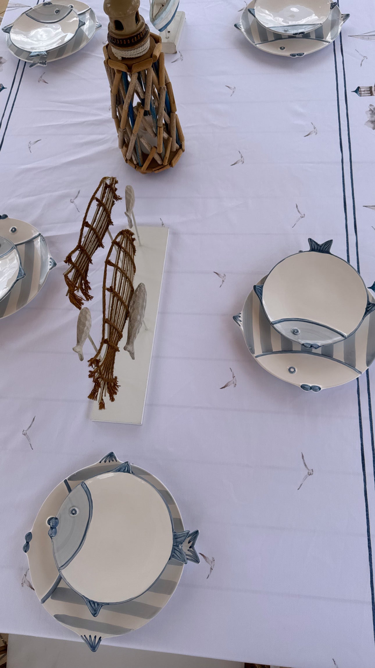 Questa tovaglia in puro cotone, dalla fantasia marina delicata e ricercata, dona freschezza e leggerezza agli ambienti, perfetta per pranzi estivi, cene all’aperto o semplicemente per sognare le vacanze anche a casa.