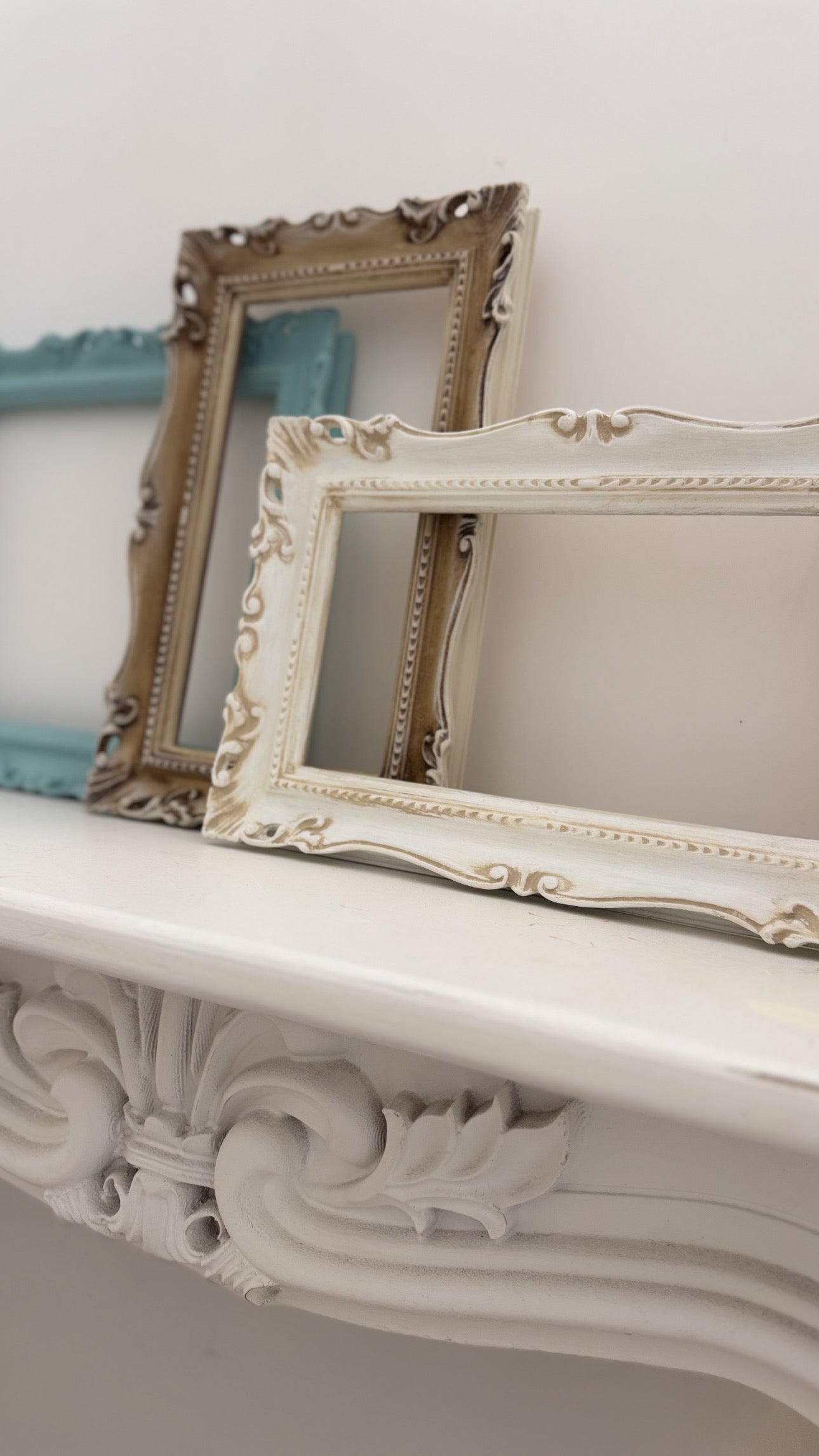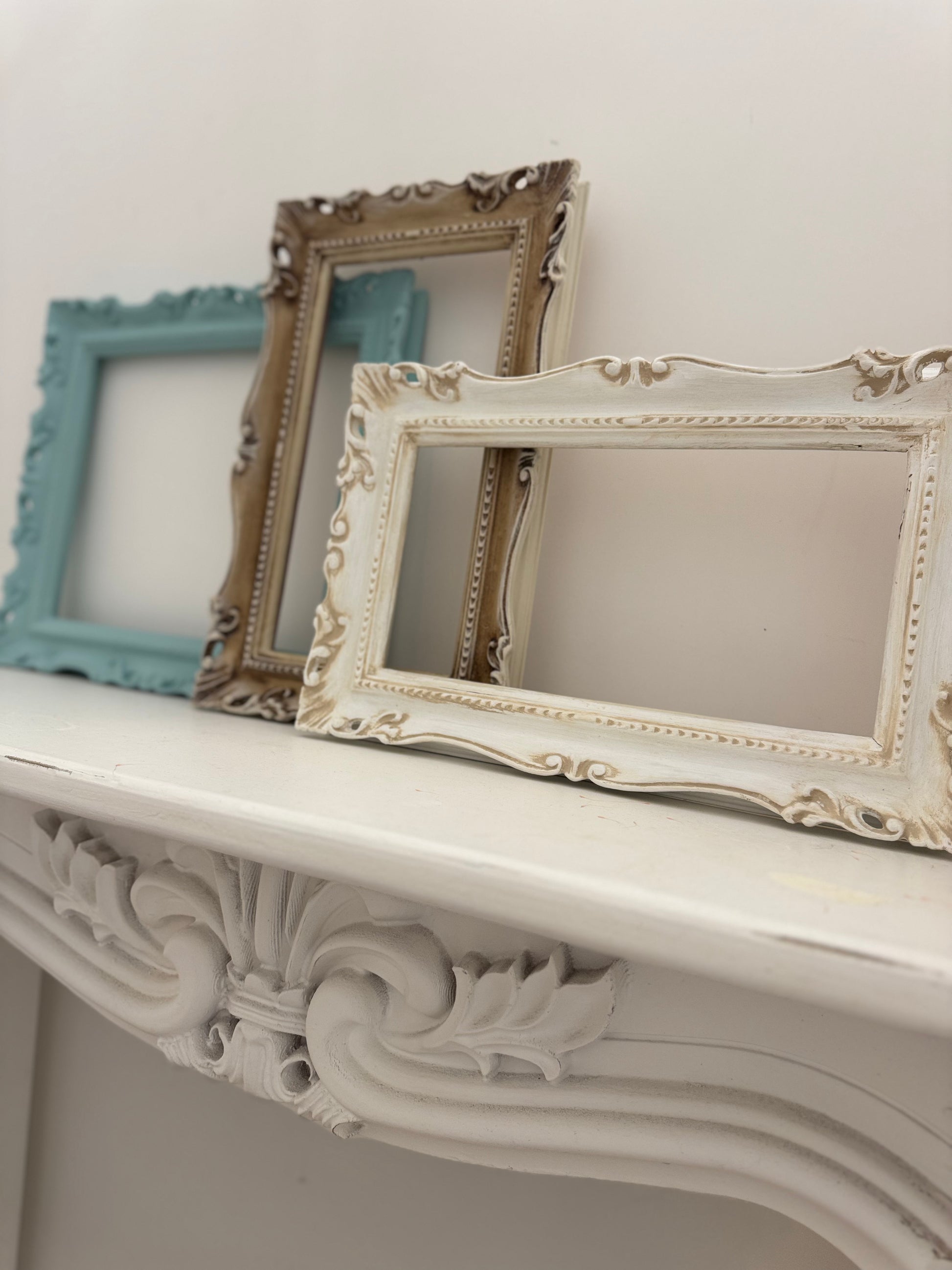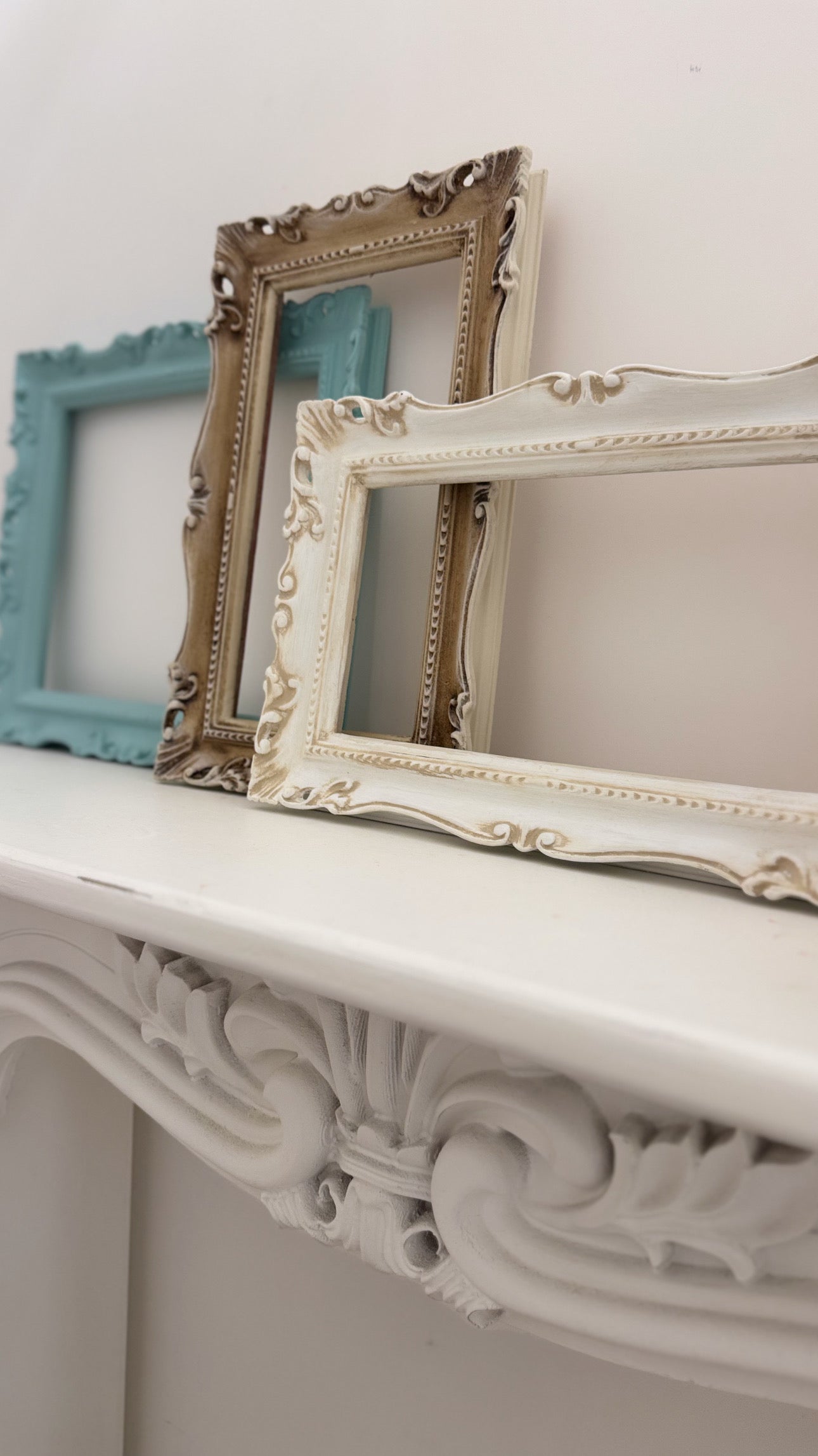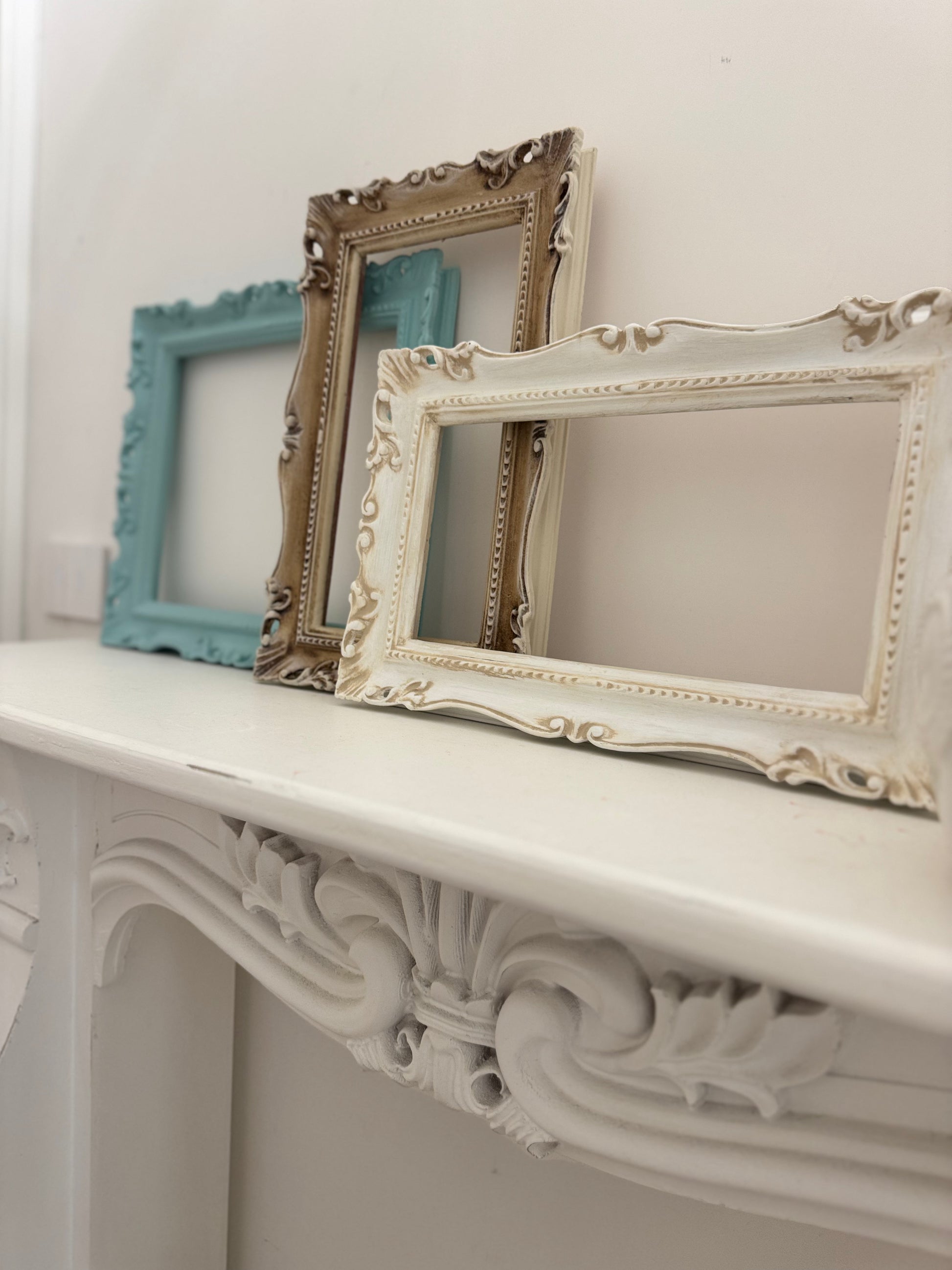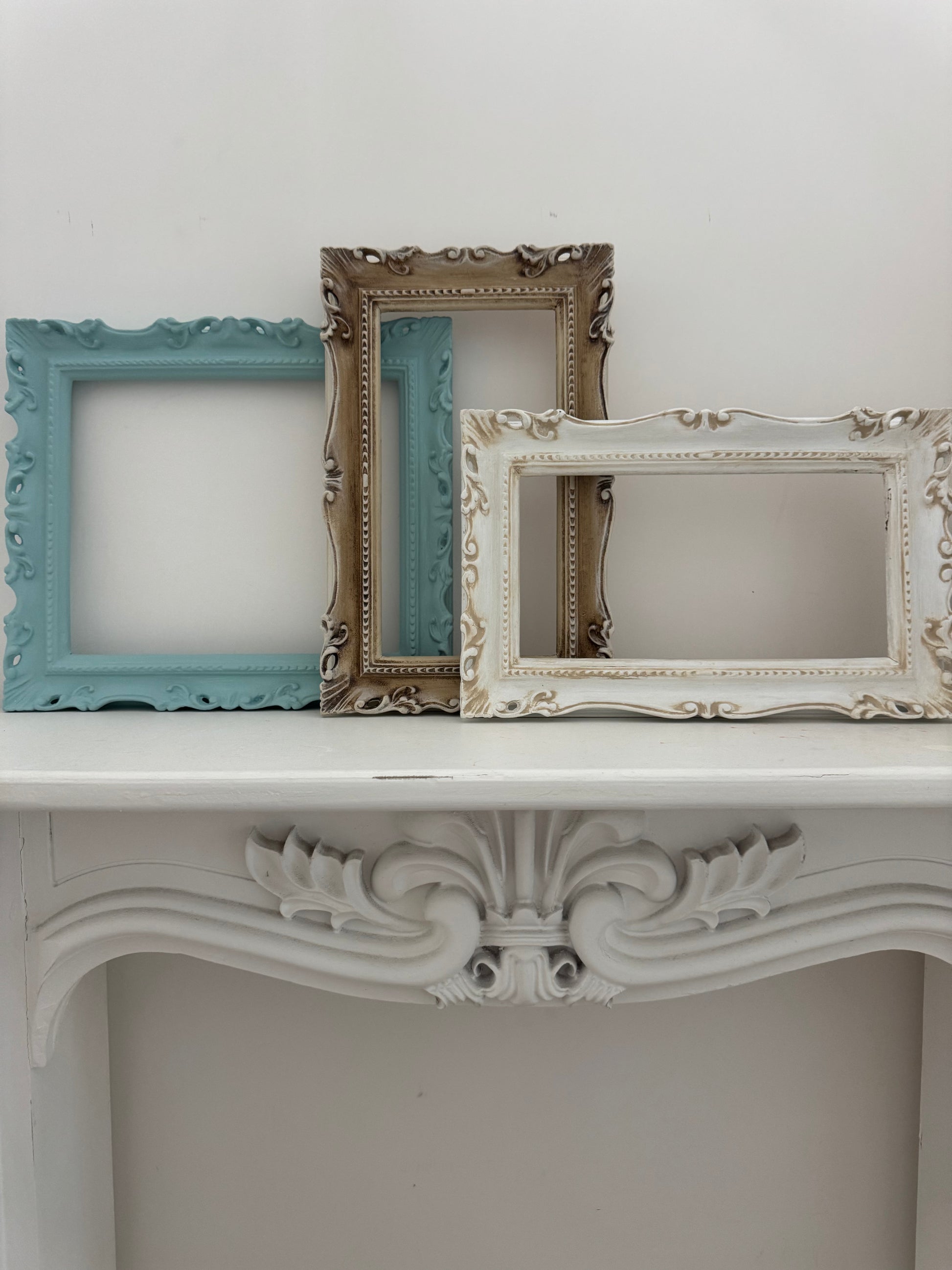Tre cornici antiche, restaurate con cura per conservare tutto il fascino del passato.